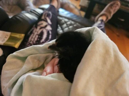 As Sapphire got closer to adulthood he would often engage in sparring with the other two roosters as roosters do. Until one night, about a month ago, I checked on everyone for the night, and I saw Hades on the floor of the coop with a deep bloody gash in his comb. I knew I had to bring him in and separate him until he healed up. Later that night, he had a seizure while I was cleaning him up. Sapphire had really messed him up and stressed him out badly. It absolutely broke my heart to see him hurt like this. Hades still has a little limp to this day from this altercation.